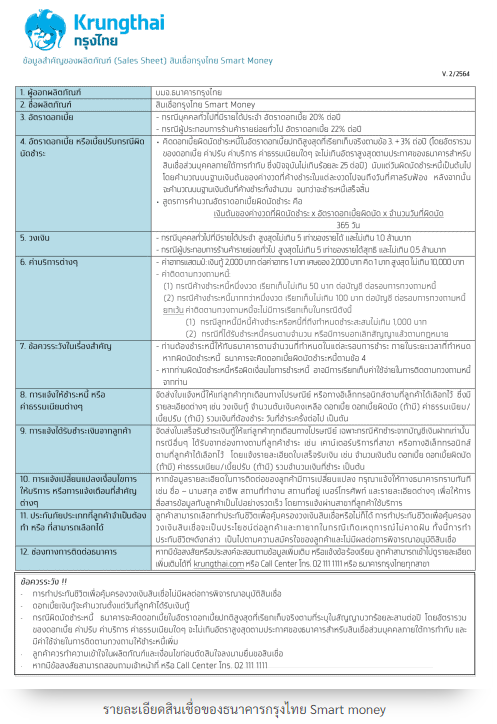 รายละเอียดและเงื่อนไขสมัครสินเชื่อกรุงไทยใจดี Smart Money